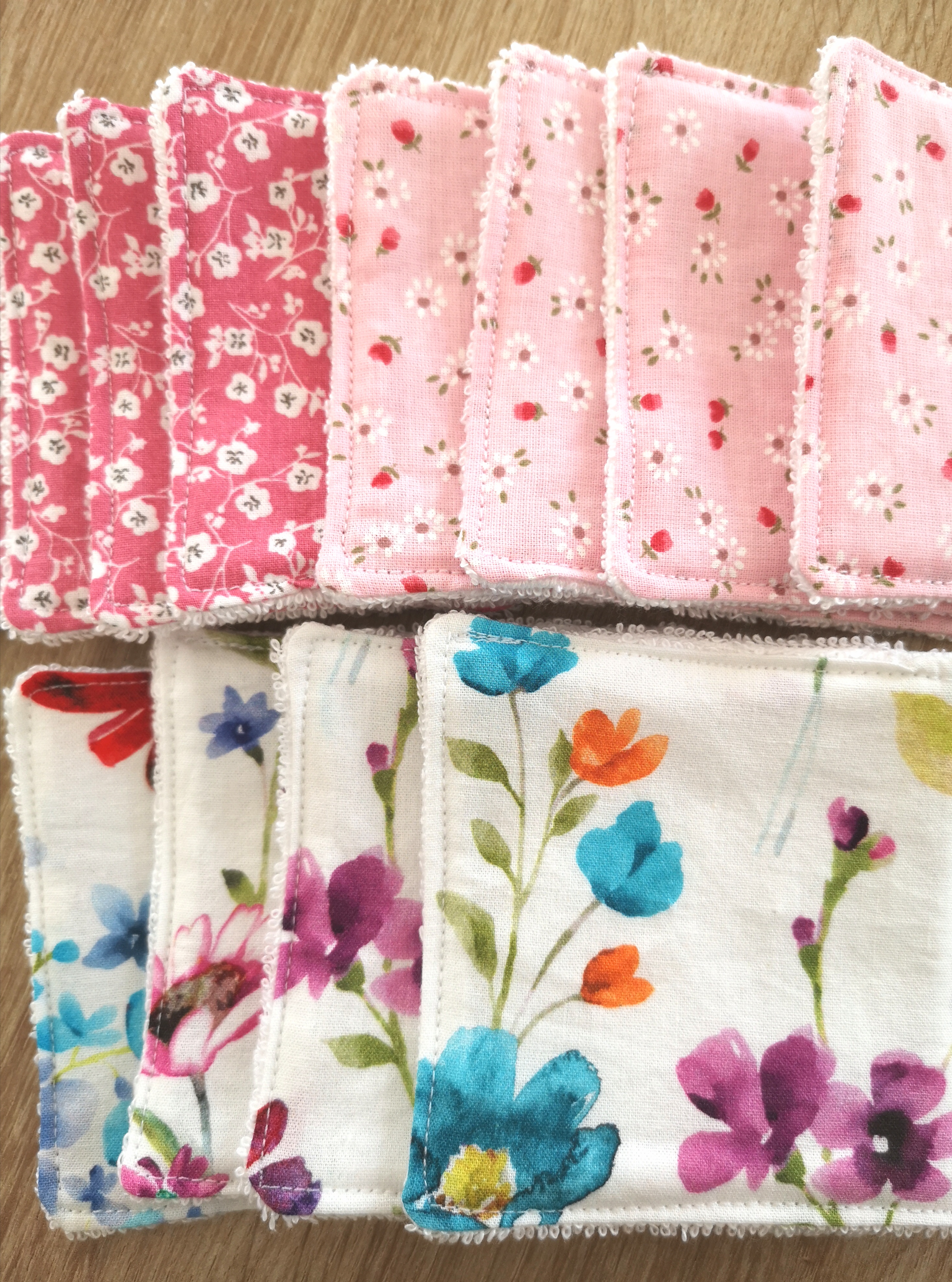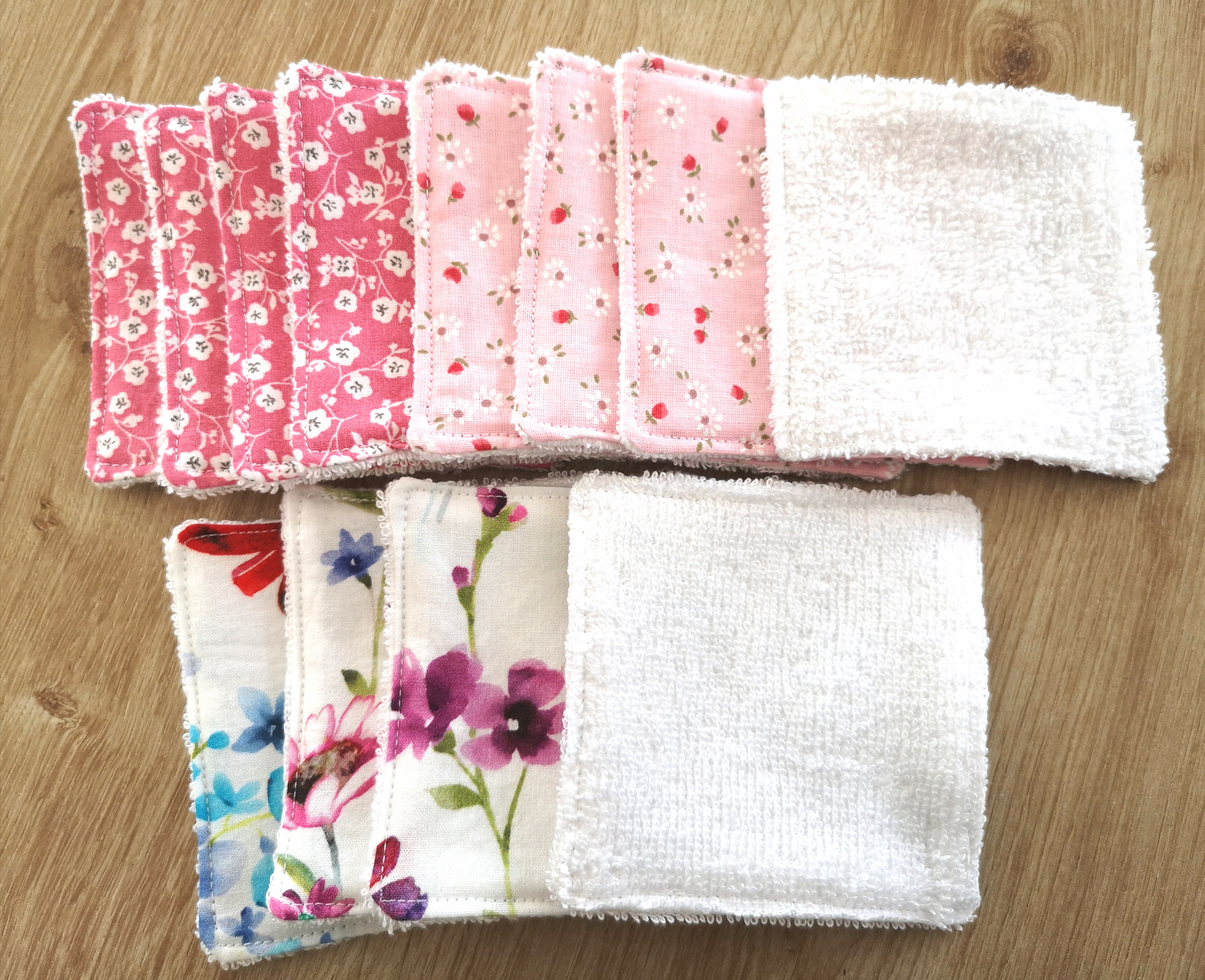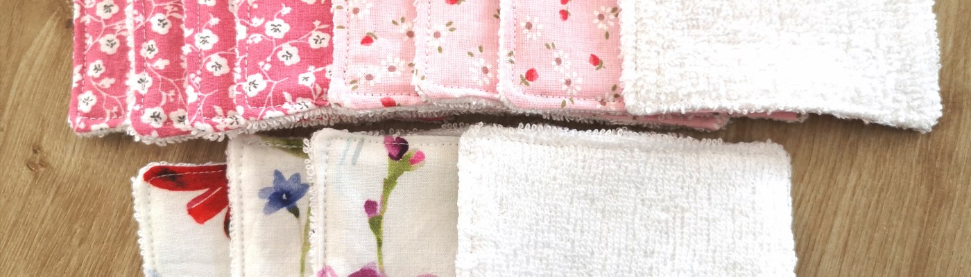 Toujours dans une démarche plus durable, j’ai utilisé des chutes de tissus en coton pour coudre des cotons démaquillants :