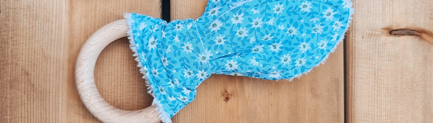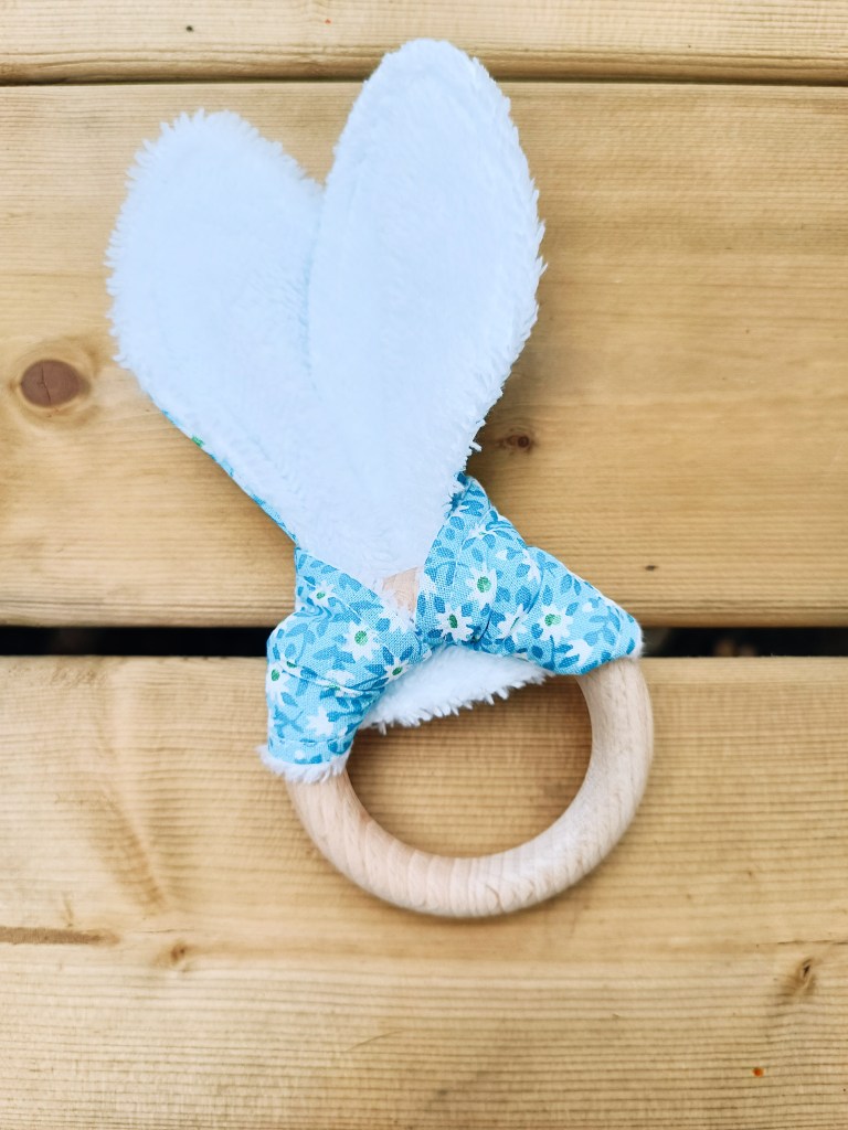 L’anneau en bois vient quant à lui de la mercerie TTC 2000 à Calais. Attention ! Il s’agit d’un anneau en bois non traité spécialement conçu pour réaliser un anneau de dentition.