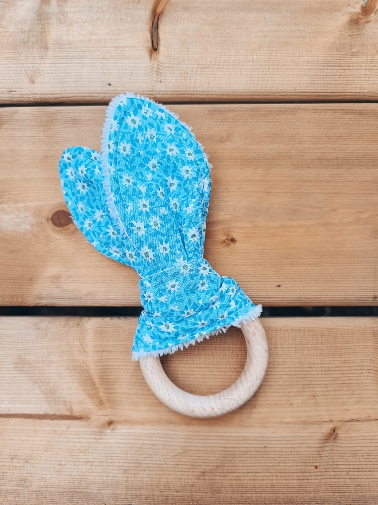 Une fois de plus, je couds pour un cadeau de naissance. Cette fois il s’agit d’un anneau de dentition qui présente l’avantage d’être facile et rapide à réaliser.
